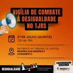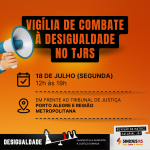 Os trabalhadores da Justiça gaúcha estão mobilizados pelo fim da desigualdade salarial no Tribunal de Justiça (TJRS). Por isso, o Sindjus convoca os servidores e servidoras do Judiciário estadual para a Vigília pelo Fim da Desigualdade no TJRS, que será realizada entre os dias 18 e 22 de julho, das 12h às 19h, em frente ao Tribunal.