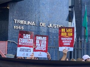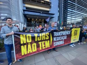 Os dirigentes também destacaram a falta de transparência do TJRS, já que desde fevereiro o Sindicato solicita acesso aos dados orçamentários, pedido que foi negado pela Administração, além da destinação de R$ 300 milhões para gastos com pessoal, identificados em reunião técnica realizada no fim de março. Ao fim da Assembleia Geral, os trabalhadores e trabalhadoras saíram em marcha até a frente do Tribunal carregando a caixa preta e os questionamentos sobre quem beneficia e o que financia. “Somos parte do Tribunal de Justiça e exigimos respeito “, exclamou o coordenador-geral no encerramento do ato.