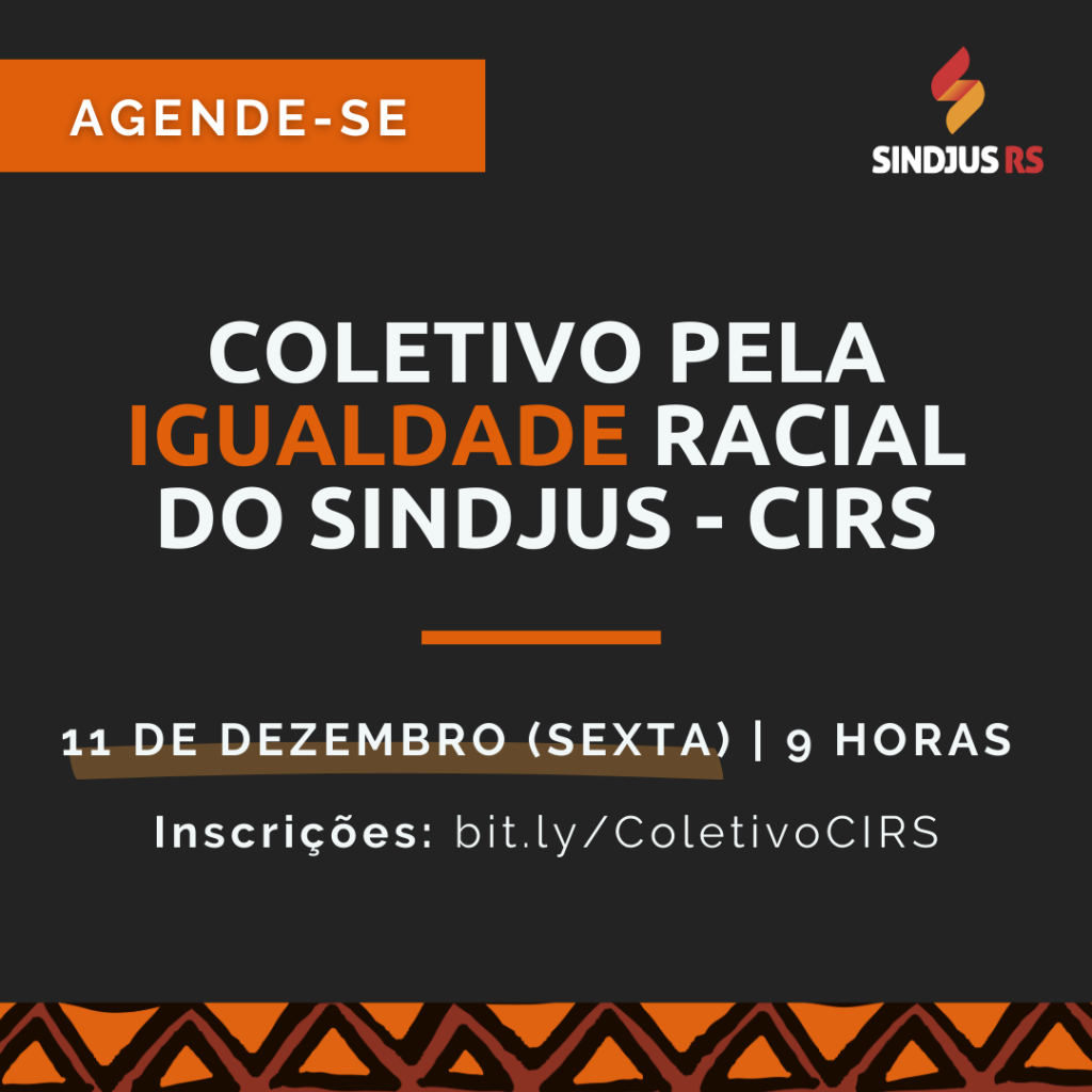 Dentro do compromisso de ampliação dos espaços de diálogo dentro da atividade sindical, e da construção coletiva da luta sociais, o Sindjus está retomando o Coletivo pela Igualdade Racial do Sindjus. A primeira atividade será um encontro virtual no próximo dia 11 de dezembro, às 9h, por meio da plataforma Google Meet. As inscrições devem ser feitas em bit.ly/ColetivoCIRS.
