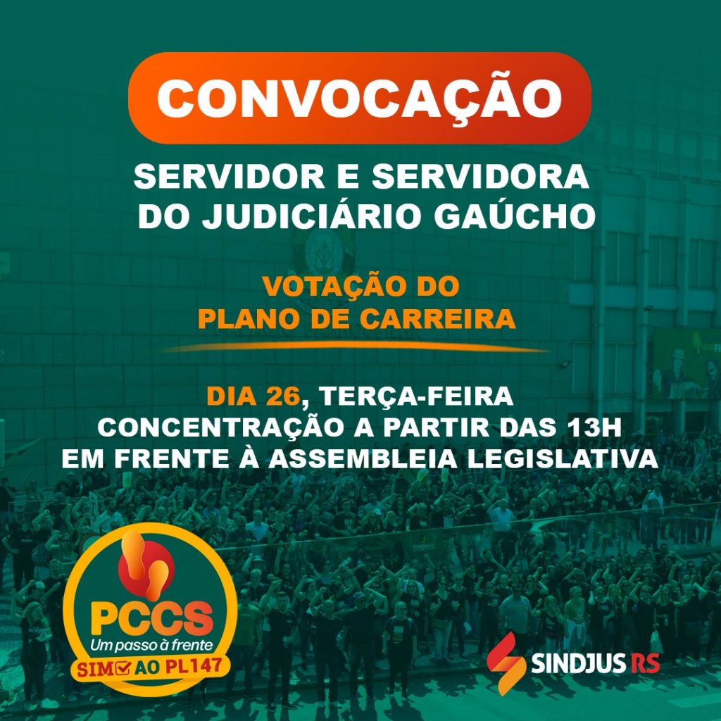 É nesta terça o passo que falta para aprovar o Plano de Carreiras, Cargos e Salários dos Servidores (PCCS) da Justiça gaúcha!