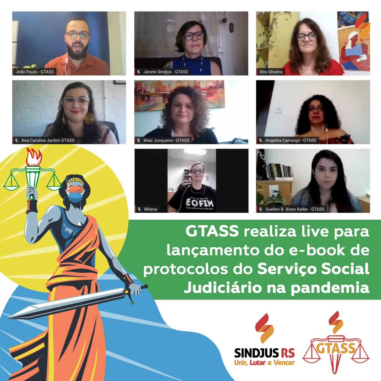 O Grupo de Trabalho dos Assistentes Sociais do Sindjus (GTASS) realizou no último dia 30, a live “Uma análise sobre o trabalho técnico em tempos de pandemia”, oportunidade em que também foi lançamento do e-book “Protocolos de Atendimento do Serviço Social Judiciário no contexto da pandemia pela Covid-19”.