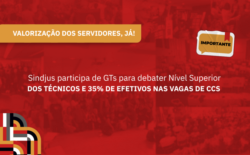 Já no GT sobre o percentual de 35% de efetivos nos cargos comissionados (CCs), o Sindjus reforçou a necessidade de que, no mínimo, 35% das vagas sejam ocupadas por servidores efetivos, garantindo estabilidade, impessoalidade e valorização da carreira, evitando que cargos estratégicos sejam preenchidos exclusivamente por indicados externos.