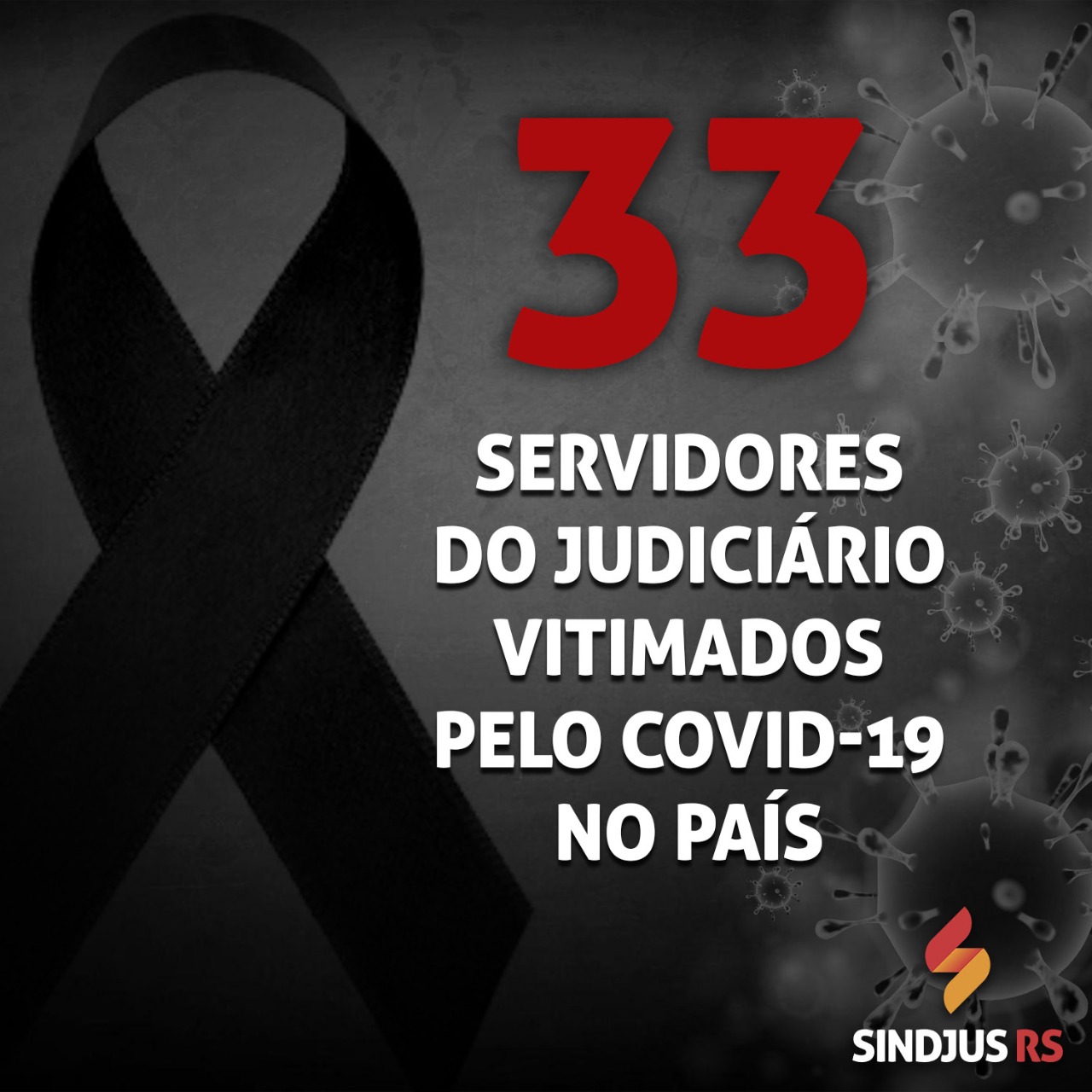 É com imenso pesar que o Sindjus RS comunica que já faleceram 33 servidores do Poder Judiciário no país, no âmbito estadual e federal, em decorrência do Covid-19. Dentre esses, 17 eram Oficiais de Justiça, que desempenham atividades externa e estão em constante risco nesses tempos difíceis.