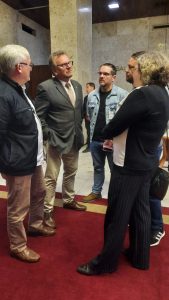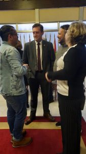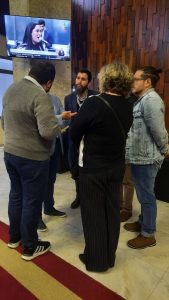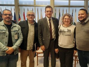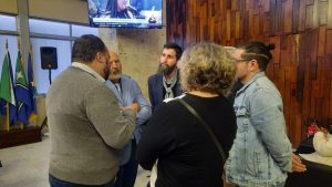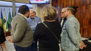 Os dirigentes do Sindjus, Osvaldir Rodrigues, Fabiano Zalazar; da Abojeris, Valdir Bueira; do Simpe, Alberto Ledur e Sandra Zembruski;  estiveram reunidos com os deputados Miguel Rossetto (PT), Luciana Genro (PSOL), Nadine Anflor (PSDB), Professor Bonatto (PSDB), Luiz Fernando Mainardi (PT), Guilherme Pasin (PP) e Frederico Antunes (PP), integrantes da CCJ, além de outros parlamentares que não integram a comissão.