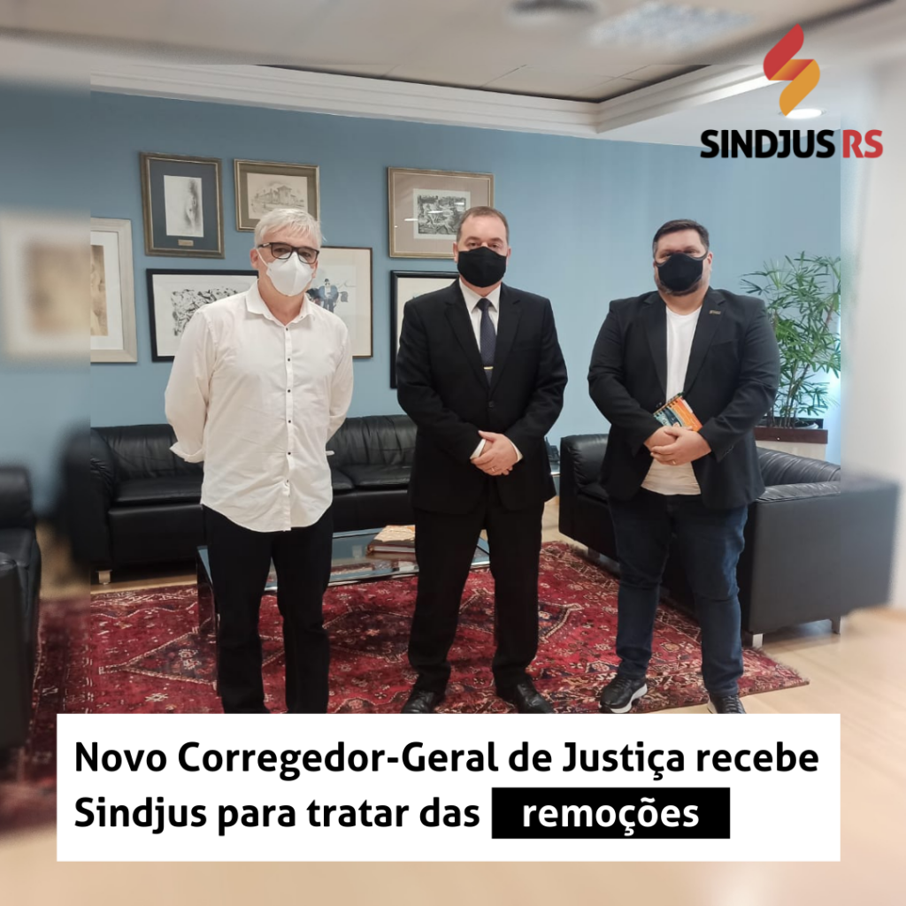 Na tarde desta segunda-feira (7) dirigentes do Sindjus/RS foram recebidos no Tribunal de Justiça do RS (TJRS) pelo recém-empossado Corregedor-Geral de Justiça (CGJ), desembargador Giovanni Conti, para dialogarem sobre um tema emergencial que gerou grande repercussão no últimos dias: a convocação de novos servidores sem a publicação de edital de remoção prévio. A busca de uma resolução que respeitasse o direito dos servidores já na ativa foi uma das prioridades do Sindicato na última semana.