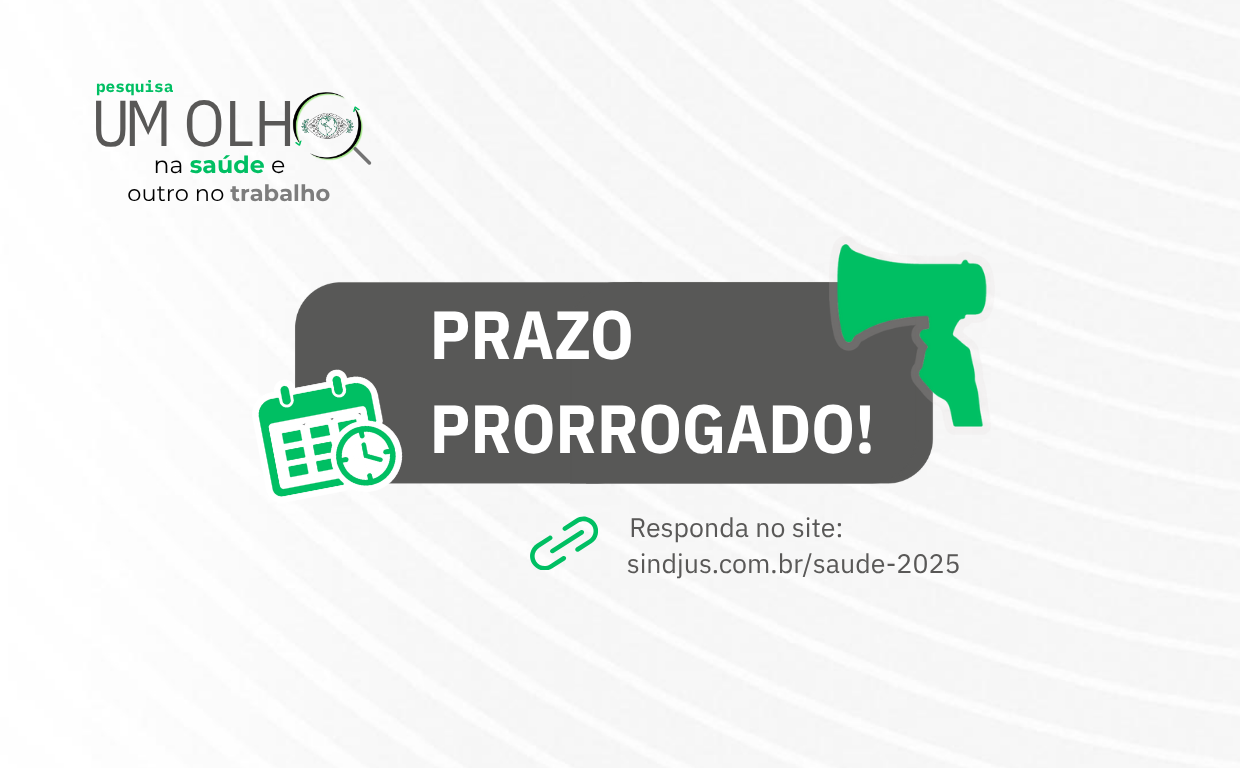 Por isso, o prazo da pesquisa “Um olho no trabalho; outro na saúde” foi prorrogada até o dia 20 de outubro. A iniciativa, conduzida pelo Núcleo de Pesquisa em Saúde do Sindjus tem como objetivo compreender como o trabalho tem impactado a saúde dos trabalhadores e trabalhadoras do Judiciário. Mais do que números, as respostas revelam ele histórias, desafios e caminhos possíveis para garantir condições dignas de trabalho e de vida.
