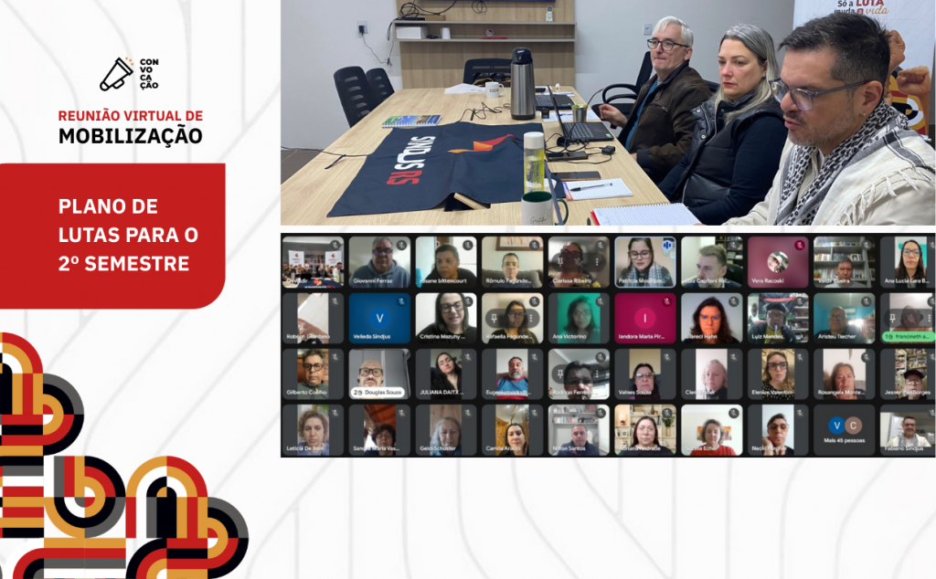 O Sindjus realizou na última sexta-feira (22/8), a Reunião Virtual de Mobilização da categoria, com o objetivo de reforçar a unidade e apresentar o plano de lutas e principais pautas para o 2º semestre. Durante a atividade, a direção sindical também atualizou sobre pedidos administrativos, processos judiciais, pautas econômicas e definiu estratégias de mobilização presencial e virtual.