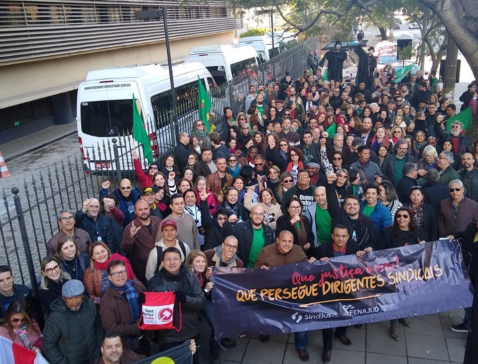 Lideranças sindicais de outras categorias também participaram do ato, manifestando solidariedade em relação à realidade enfrentada pelos servidores do judiciário e denunciando também em suas falas o prejuízo que a precarização da justiça representa para a sociedade. Na avaliação do diretor de imprensa e divulgação do Sindjus, Emanuel Dall’Bello, a atividade “superou as expectativas dos organizadores, sendo um marco para toda a categoria, que participou em grande número, da retomada de um sindicato de luta e comprometido com os interesses dos trabalhadores e trabalhadoras”.