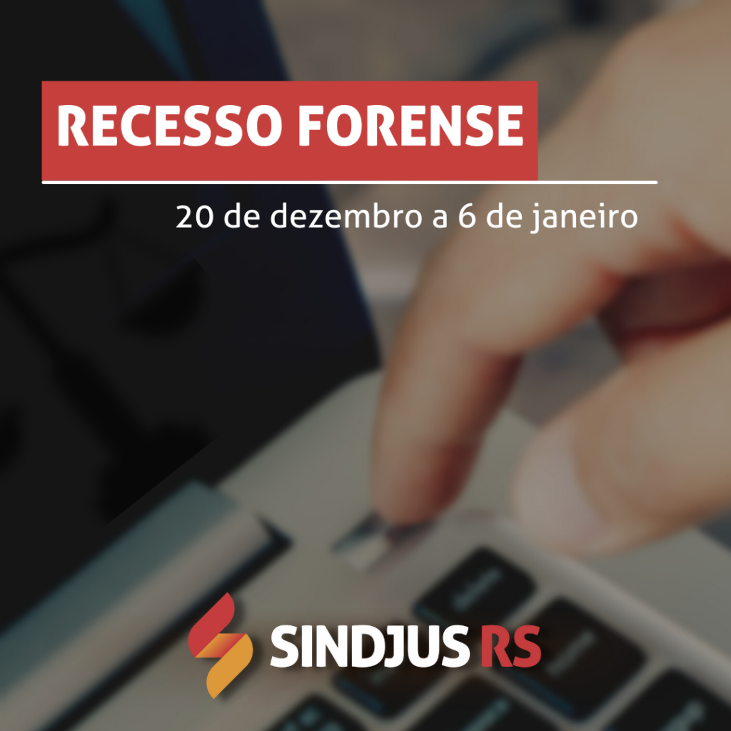 Informamos que o Sindjus/RS estará em recesso entre os dias 20 de dezembro e 6 de janeiro, mesmo período do recesso forense, retomando as atividades no dia 7 de janeiro. Em caso de solicitações urgentes estaremos atendendo pelo e-mail contato@sindjus.com.br.