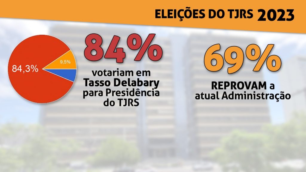 O SindjusRS também questionou, caso as servidoras e servidoras pudessem participar da escolha da Presidência, em quem votariam? Neste sentido, 84,3% das pessoas que participaram da consulta escolheram o desembargador Tasso Delabary, da chapa 2 que representa a oposição; 6,2% votariam no desembargador Alberto Delgado, da chapa 1 de situação, e 9,5% votariam em branco ou nulo.
