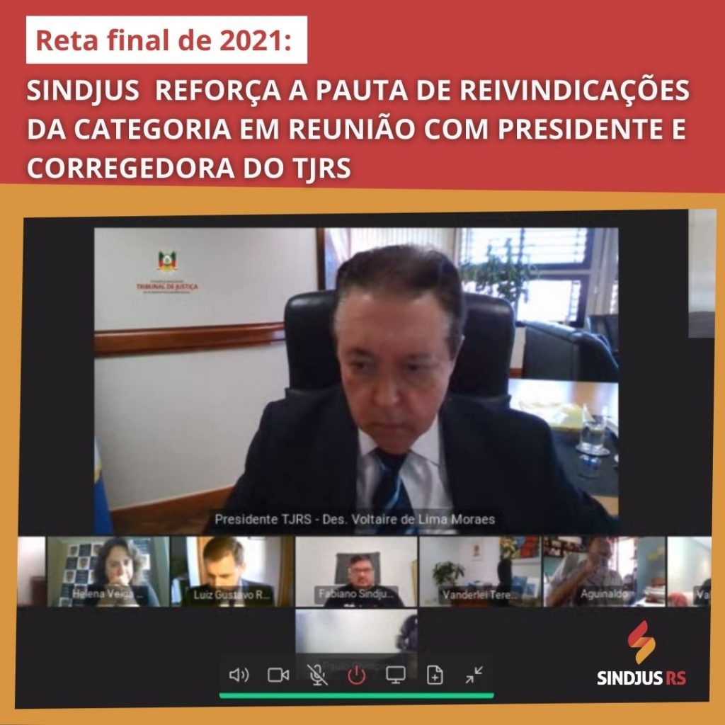 As principais reivindicações do conjunto de trabalhadores da Justiça estadual foram reforçadas com a presidência do TJRS em reunião virtual realizada nesta quarta-feira (20). O encontro contou com a participação do presidente do Tribunal, Voltaire de Lima Moraes, a Corregedora-Geral da Justiça, Vanderlei Teresinha Tremeia Kubiak e dirigentes das entidades representativas dos servidores e servidoras do Judiciário gaúcho.