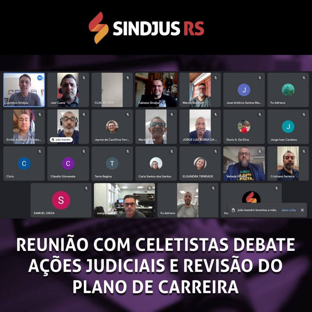 “Estamos vendo essa revisão do plano de carreira como uma oportunidade para avançar na valorização e direitos também dos celetistas, e não apenas na questão dos reajustes salariais, mas também no que se refere à progressão e promoção”, destacou o diretor Jurídico, apontando que em breve a direção do Sindjus vai agendar uma nova reunião para tratar exclusivamente de um projeto concreto de valorização para os celetistas.