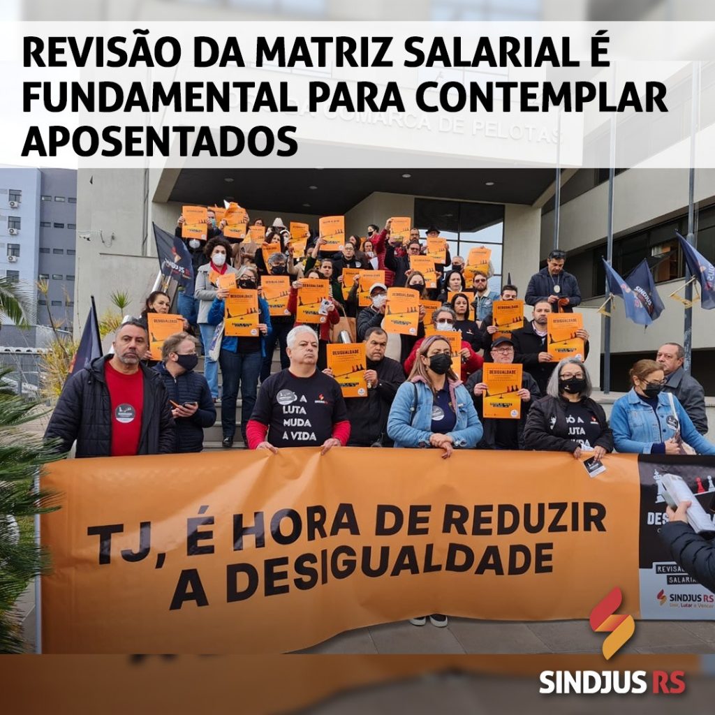 A direção do Sindjus, que recebe diariamente relatos preocupantes sobre a situação de servidores aposentados, tem se empenhado pela revisão da matriz salarial do Judiciário estadual, a fim de amenizar os impactos sobre a vida de quem não está mais na ativa. “Nossos colegas aposentados contribuiram para fazer do Judiciário o que ele é hoje e não estão recebendo o devido reconhecimento e valorização. É urgente que o Tribunal de atenção para a situação desses trabalhadores”, pontua o coordenador-geral do sindicato, Osvaldir Rodrigues. A campanha para que o TJRS negocie a revisão está em andamento, com a realização de assembleias regionais, lives e ações de mobilização virtual. Uma Assembleia Geral deve ser realizada no dia 14 de outubro em Porto Alegre, para debater a continuidade da luta.