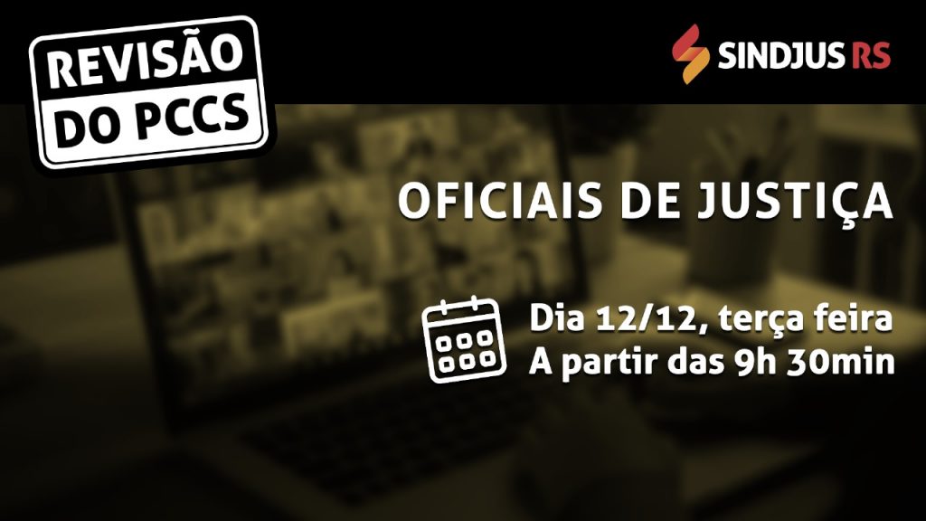 A direção do Sindjus reúne na próxima terça-feira (12/12), às 9h30, os Oficiais de Justiça para ouvir as sugestões dos servidores e servidoras para a atuação do Sindicato na Revisão do PCCS, que será realizado no próximo ano.