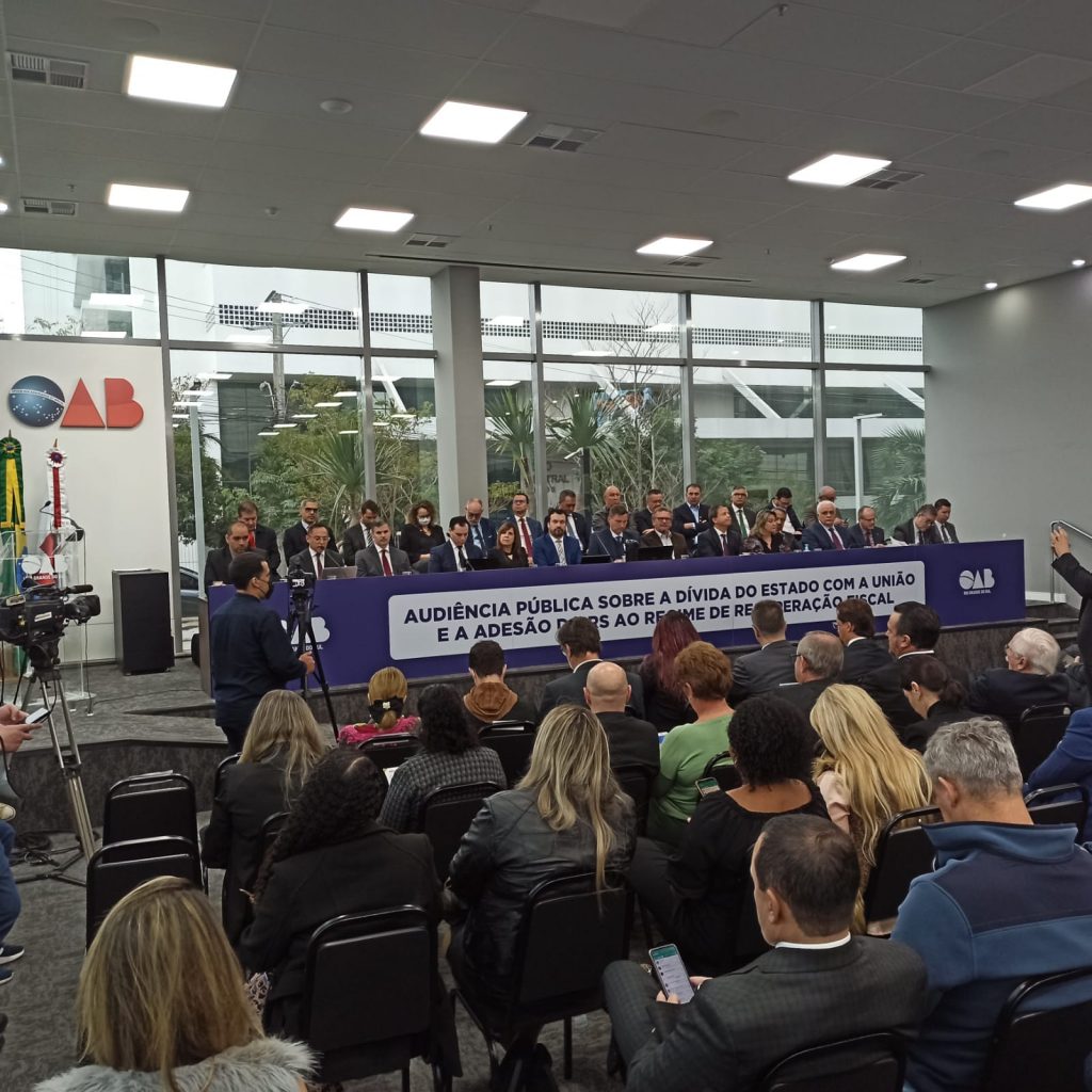 A semana de mobilizações para garantir um reajuste salarial digno e impedir a implementação do Regime de Recuperação Fiscal (RRF) começou com a participação de dirigentes do Sindjus/RS nesta segunda-feira (2/5) na audiência pública promovida pela Ordem dos Advogados do Brasil – Seccional RS (OAB/RS) sobre a dívida do Estado com a União.