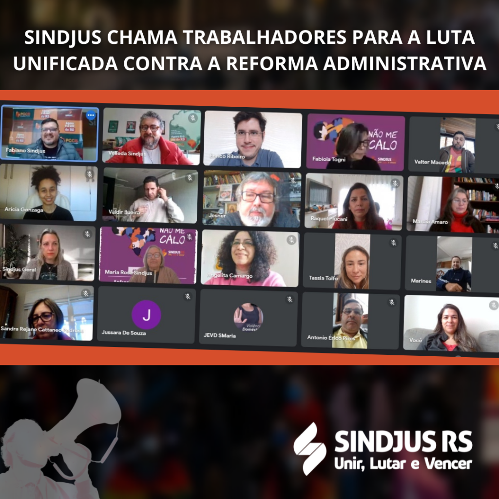 “Esse é o momento de lutarmos todos juntos”, essa foi a frase de encerramento da Roda de Conversa promovida pelo Sindjus para alertar sobre os riscos da aprovação da Reforma Administrativa. A atividade virtual realizada nesta terça-feira (27/7) contou com a presença da Queiroz Assessoria Parlamentar e Sindical, que presta apoio técnico ao Sindjus.