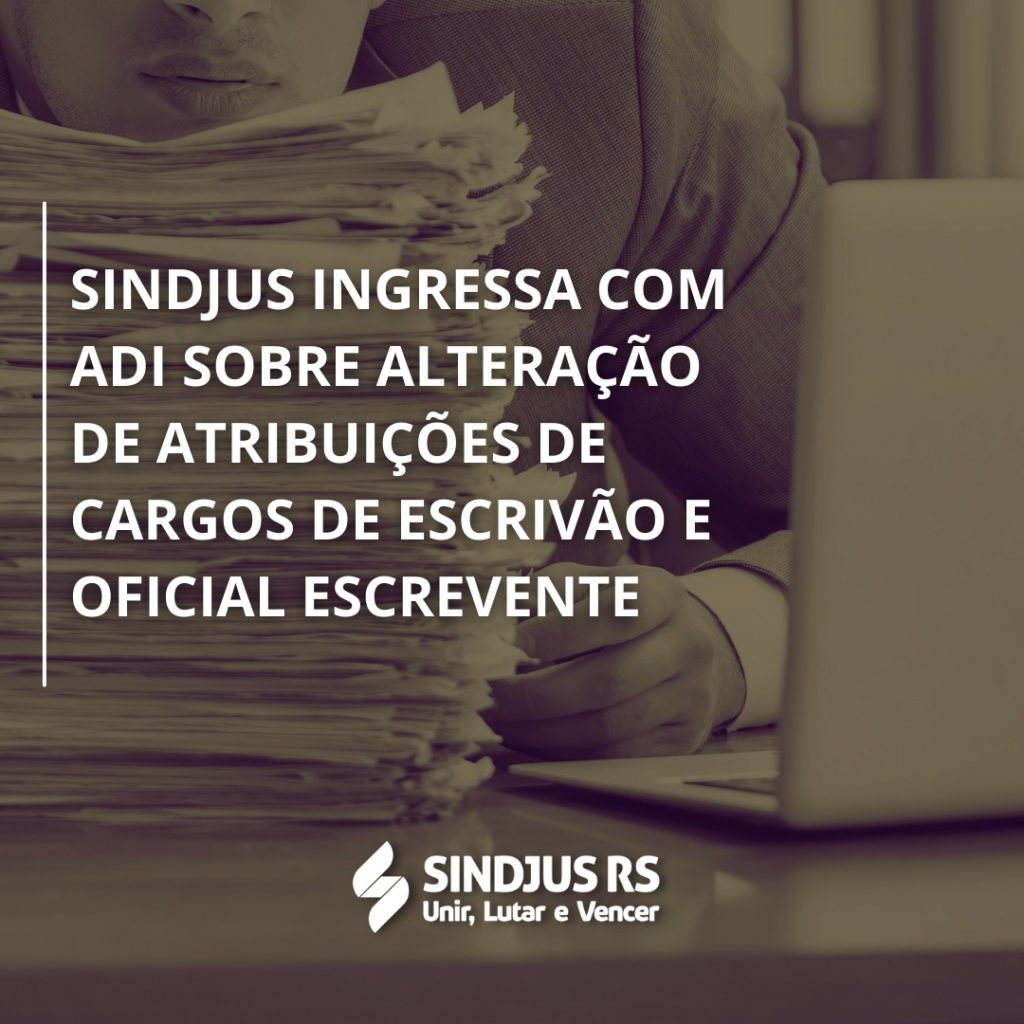 O Sindjus ingressou por meio de sua assessoria jurídica, com Ação Direta de Inconstitucionalidade (ADI) junto ao Tribunal de Justiça do RS (TJRS) em relação à lei 15.626/2021, que faz modificações na lei 7.356/1980 (que dispõe sobre o Código de Organização Judiciária do Estado), promovendo alteração das atribuições dos cargos de escrivão e Oficial Escrevente do Judiciário estadual.