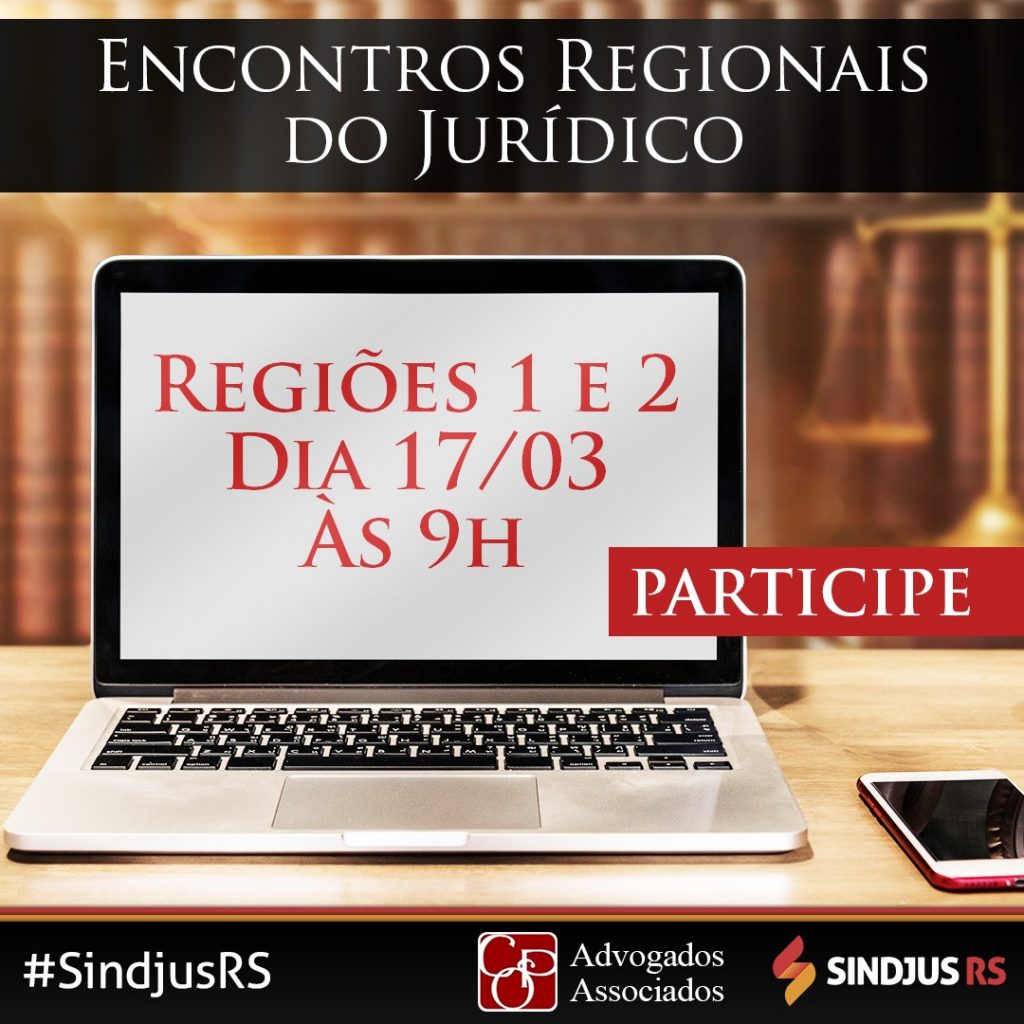 Os Encontros Regionais do Jurídico ocorrerão mensalmente e congregarão duas regiões por evento. Dando início aos trabalhos, o sindicato e o escritório receberão virtualmente os servidores e servidoras das regiões 1 e 2 (veja abaixo as comarcas de cada região) nesta quarta-feira (17) às 9h. O evento ocorrerá por meio da plataforma Google Meet, e deverá ser acessado por meio do link disponível no final desta matéria.