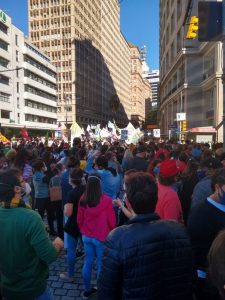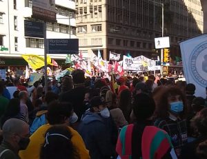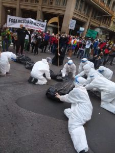 Partindo da frente da Prefeitura, o protesto seguiu com caminhada pelo centro da cidade, passando pela orla do Guaíba até chegar ao Largo Zumbi dos Palmares. “Participamos como trabalhadores e conscientes do dever cívico que temos de lutar contra injustiças e medidas que ameaçam a vida da população. Poderíamos estar todos vacinados e enfrentando a pandemia em melhores condições, não fosse o descaso do governo”, pontuou o diretor de comunicação do sindicato, Emanuel Dall’Bello.