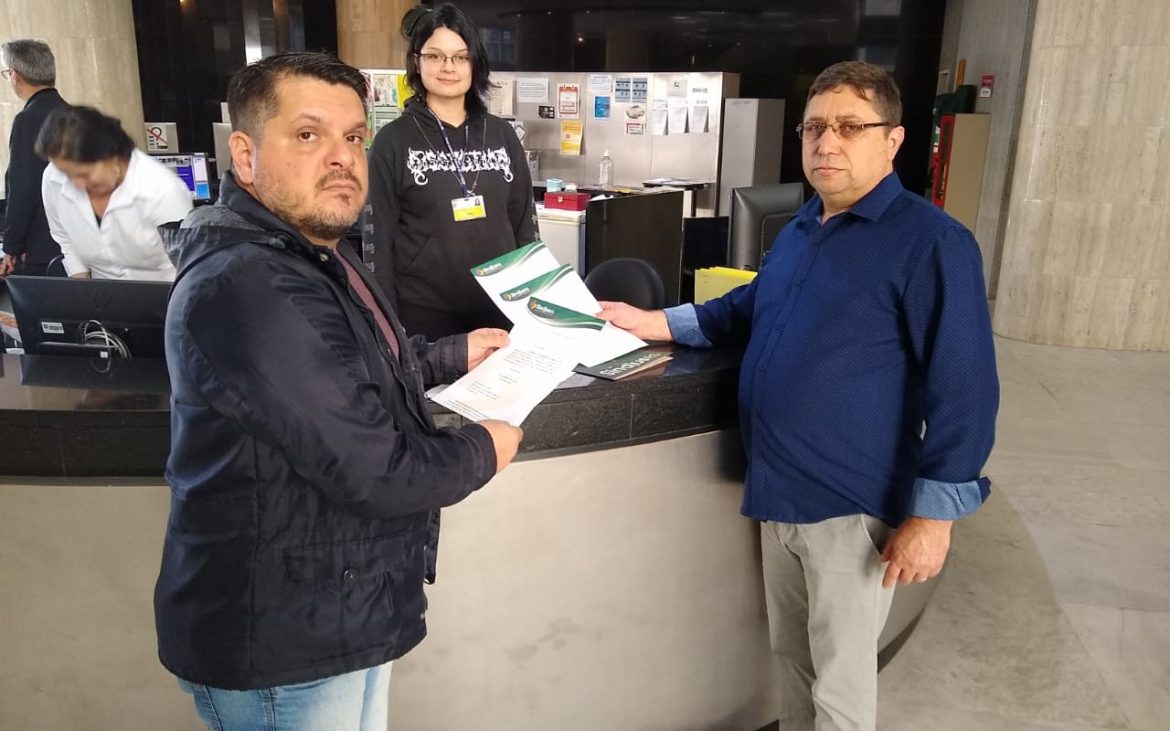 O Sindjus protocolou oficiou nesta quarta-feira, 19/06, à presidência do TJRS no sentido de apresentar à administração a direção eleita para o triênio 2019-2022, bem como solicitou audiência com a administração do Tribunal de Justiça para tratar das pautas de interesse da categoria, sobretudo em face do grave momento que enfrentamos com a ameaça da extinção de cargos, o congelamento salarial de cinco anos e as repercussões da implantação do processo eletrônico nas nossas vidas, dentre outras demandas. Precisamos de soluções urgentes por parte da administração do nosso Tribunal para os graves problemas que enfrentamos. “Estamos abertos ao diálogo e à colaboração com a nossa administração, mas não abriremos mão de lutar pelos nossos direitos”, referiu o coordenador-geral Fabiano Marranghello Zalazar.