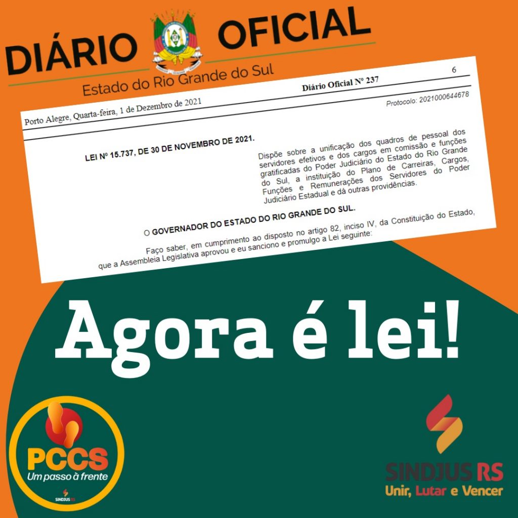 Uma luta iniciada há mais de 30 anos é coroada com uma conquista histórica para os servidores e as servidoras do Judiciário Gaúcho. Sancionado no dia 1º de dezembro pelo governador Eduardo Leite, o Plano de Carreira, Cargos e Salários (PCCS) da Justiça Estadual enfim se tornou lei. Esse desfecho é fruto de uma mobilização que deixou evidentes a capacidade de união dos trabalhadores e trabalhadoras e a importância da construção coletiva com diálogo e responsabilidade.
