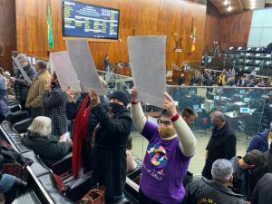 “O que temos hoje não representa a pluralidade do povo gaúcho e os interesses da maioria da população. Há uma oposição reduzida e, ao mesmo tempo, muitos representantes do empresariado, do agronegócio, de setores com interesses que não dialogam com as necessidades do povo gaúcho. Por isso a classe trabalhadora tem sofrido sucessivas derrotas nesta Casa, que ratifica os ataques deste governo. Outubro está aí e nos oferece uma oportunidade de mudar essa situação, votando em candidaturas comprometidas com o serviço público”, defendeu Zalazar.